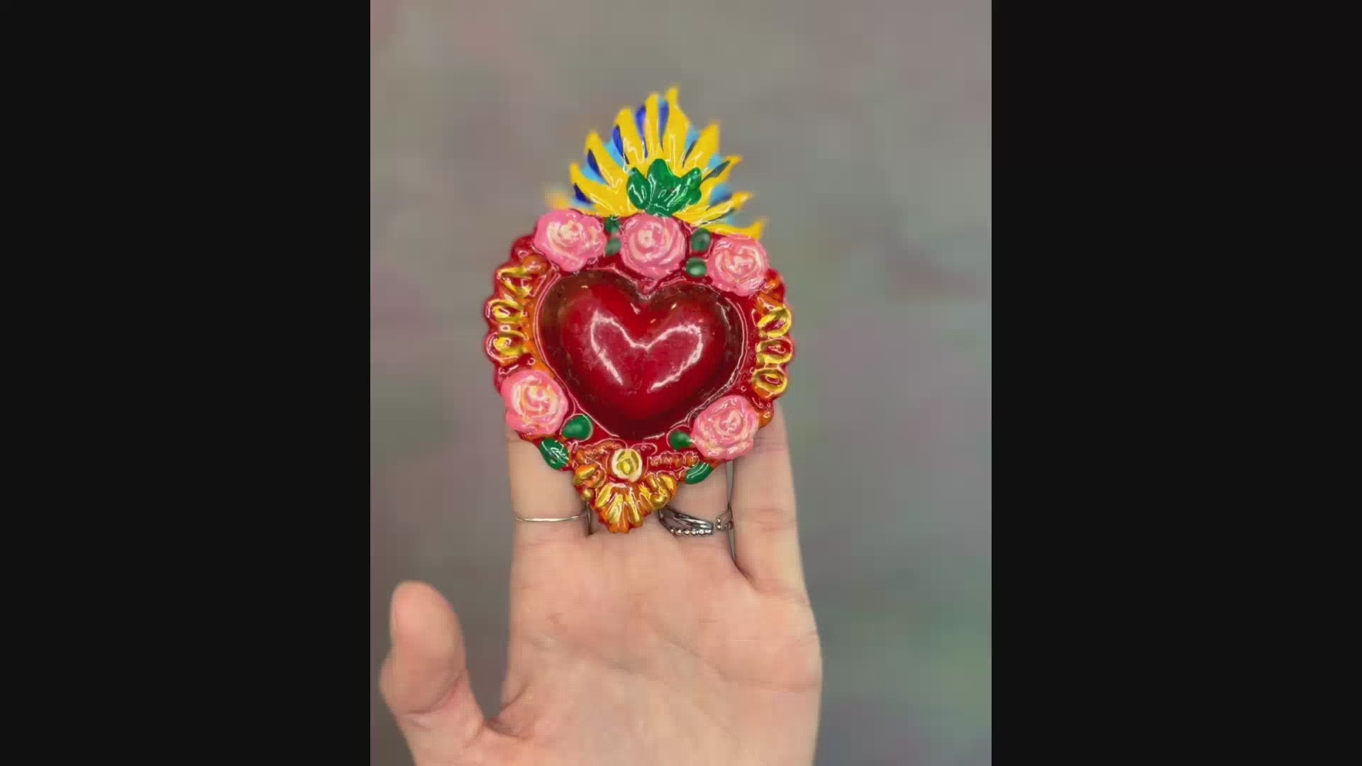 Heart-shaped napkin ring punched in bas-relief with folk details. The object wants to celebrate all forms of love, light and positive thoughts, even during a lunch!