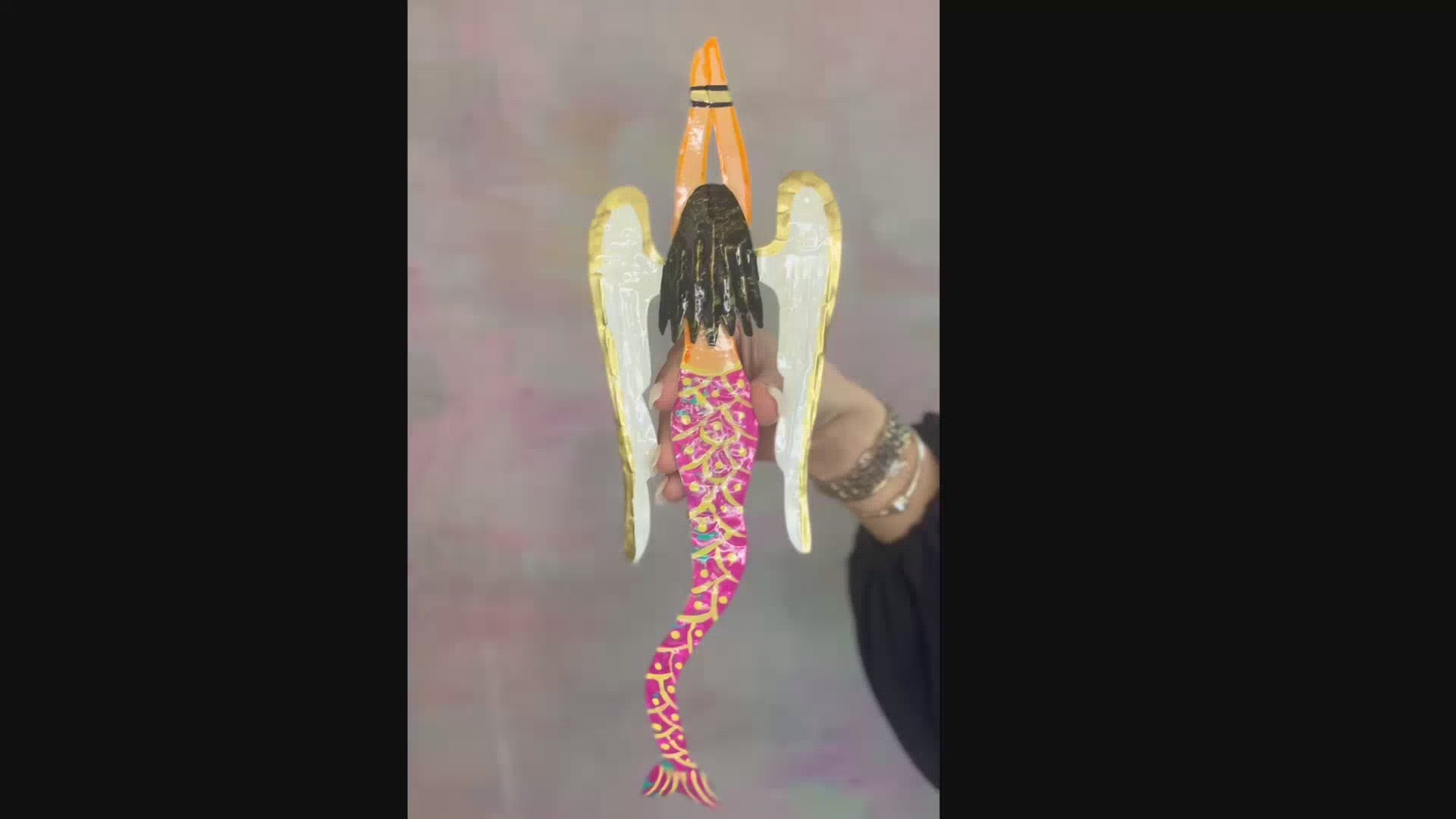 Bas-relief punched flying mermaid wall decoration. The mermaid represents beauty, femininity and sensuality. Ex Voto - Good Luck Amulets.