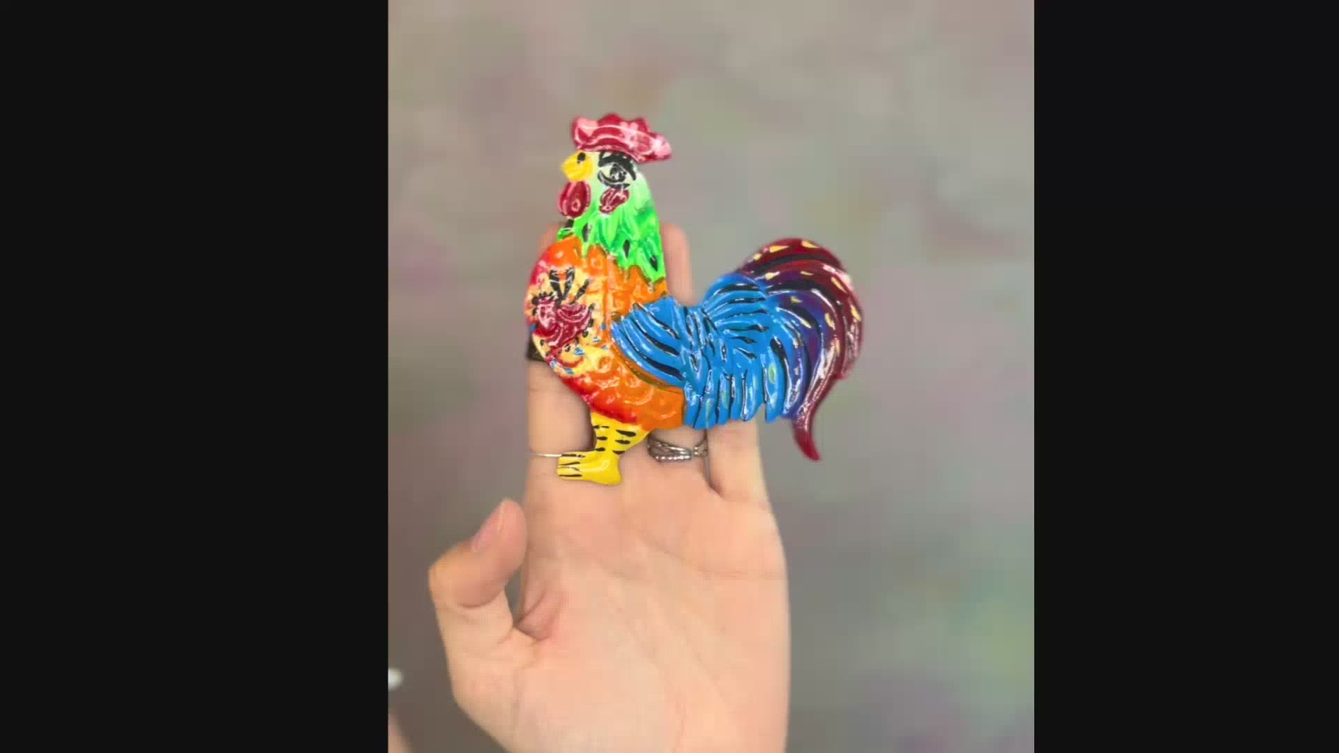 Porte-serviette en forme de coq multicolore peint à la main, ajouré en bas-relief et décoré de motifs folkloriques. Le coq est un symbole positif de lumière et de chance, même pendant un déjeuner !