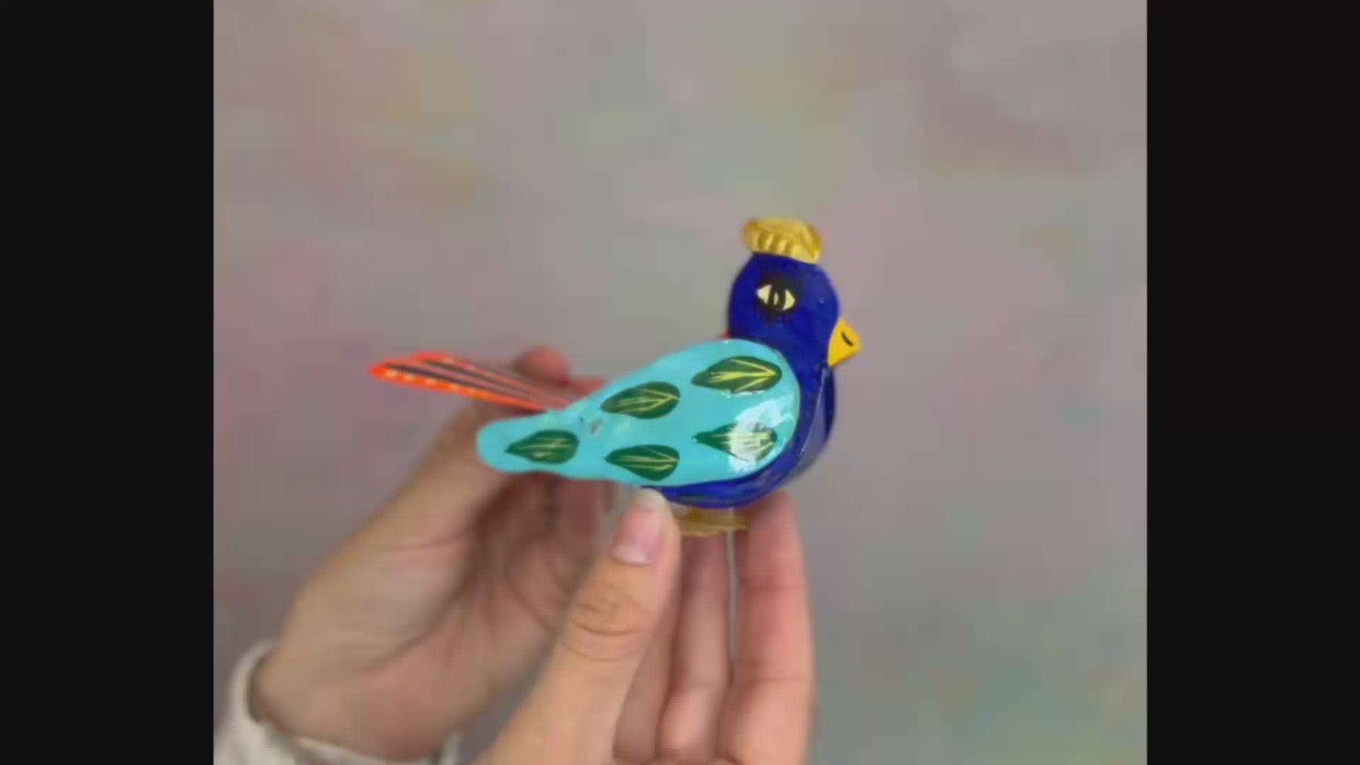 Paon miniature multicolore peint à la main : peut être utilisé comme espace réservé sur la table. Le paon est considéré comme un animal divin, symbole de beauté, de positivité et de renaissance.