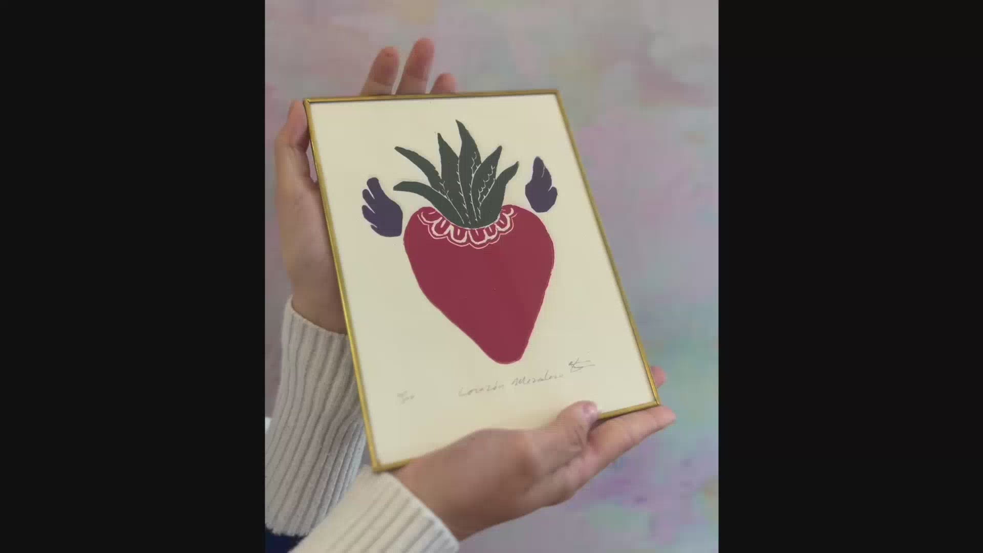 Schizzo decorativo disegnato a mano che rappresenta un cuore alato con immaginarie foglie di agave in fiore. Incorniciato in ottone placcato oro e ricoperto di vetro. L'oggetto vuole celebrare tutte le forme dell'amore, della luce e dei pensieri positivi.