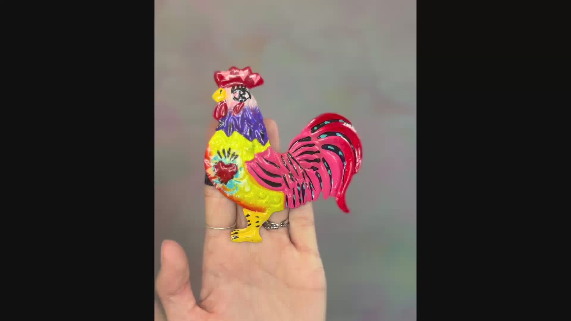 Portatovaglioli a forma di gallo multicolore dipinto a mano, traforato in bassorilievo e decorato con motivi folkloristici. Il gallo è un simbolo positivo di luce e fortuna, anche durante un pranzo!